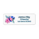 Watercolor pink roses and blue flowers illustration. Add your name and address in the personalize area.