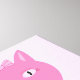 This awesome canvas print is designed for a nursery. The design features a digital art image of a pretty pink cat with a curly tail. Her eyes are pale pink with black pupils and she has long black eyelashes. She is wearing a pink bow in her hair and a beautiful pearl necklace around her neck.