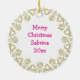 Personalized Christmas ornament with cute watercolor pink ballet shoes with pink flowers and a custom message on the back with pretty gold border.