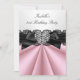 Elegant pretty Pink, Black and White, Lace Bow with a Diamond Heart, Women's Birthday Party Black Bow Silver. Birthday Party Women's Girls Silver, Glitter Silver. Classy Template . Customize with your own details and age. Template for Sweet 16, 16th, Quinceanera 15th, 18th, 20th, 21st, 30th, 40th, 50th, 60th, 70th, 80th, 90, 100th, Fabulous product for Women, Girls, Zizzago created this design PLEASE NOTE all flat images! They Do NOT have real Glitter, Diamonds Jewels or real Bows!!