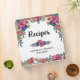 Pretty floral recipe binder with colourful flowers in pink, blush, coral, blue, and yellow against a white background with charming fonts.