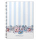 Pretty Pink & Blue Flowers & Stripes w/Name Notebook
