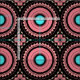 Seamless decorative geometric pattern featuring geometric shapes in pink, turquoise and black.