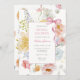 The customizable text area in the centre allows you to personalize every detail—name, date, location, RSVP, and registry—ensuring it suits your special celebration perfectly. The soft, feminine palette of blush pinks, subtle greens, and creams adds a timeless and classy touch to this invitation.