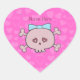 Pretty Pink Cartoon Skull & Hearts Personalized Heart Sticker