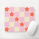 The pretty pink chequered and retro groovy orange daisy flower mousepad is perfect for the 60s, 70s retro floral lovers. Create your work or education workspace with feminine and cute daisy flowers mousepad.