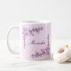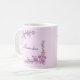 A branch of pretty pink cherry blossoms against a pink background adorns the corners of this customizable mug.