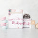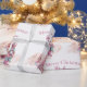 This custom wrapping paper features a pretty pink Nutcracker Christmas theme on a plain white background. Characters from the Nutcracker story are pictured around a pink coloured Christmas tree. The Sugar Plum Fairy ballerina is pictured on the left, and the giant Nutcracker and Mouse King are pictured on the right. A sample "Merry Christmas" greeting is printed above the illustration, followed by a sample name which you can personalize to include your own custom name or text.
