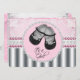 Adorable black baby shoes elegant pink and silver grey diamonds and pearl baby shower invitation. This sweet girly baby shower invitation is easily customized for your event.