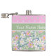 A chic Hip Flask to personalize, with pretty, with a nostalgic pattern of Pink Dog Roses on a Moody Blue background, teamed with coordinating Polka Dots on Pink.. Part of the Posh & Painterly 'Rosy Posy' collection. (This pattern will fit all of the flasks.)