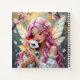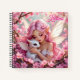 A pretty pink anime elven fairy holding her cute white baby dragon personalized notebook.