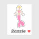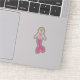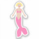 This awesome shaped sticker sheet features a digital art image of a pretty pink Mermaid. She has blonde hair and blue eyes and a pink shell top. Her tail is pink and covered in pretty pink shining diamond shaped scales. She is wearing a gold heart shaped necklace and a gold ring on her fingers. Her nails are pink and she has pink lipstick on. She also wears a beautiful pink bow in her hair.