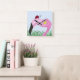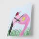 The pretty pink flamingo, Fiona is very curious to know what creature sits atop her beak. They stare at each other in wonder. Wildlife Series #6. Based on an original art piece by © One Artsy Momma