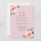 Pretty Pink Floral 13th Birthday Party Invitation