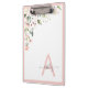 Pretty Pink Floral Script Monogram Initial Name Clipboard