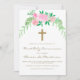 Pretty Pink Floral with Cross First Holy Communion Invitation