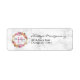 Return address labels with your monogram initial. Designed with a floral wreath made with pink and orange flowers and twigs, sprigs and leaves. This digital image was originally created with watercolors and is cute and trendy. Set on a fake white marble background texture.