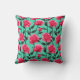 Pretty Pink Flower Pattern With Stems and Leaves Throw Pillow