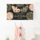 This pretty and modern themed Sweet Sixteen birthday party banner is perfect for the trendy and stylish birthday girl. Its beautiful, unique and elegant design depicts a faux printed gold foil with blush pink hand-drawn masquerade butterfly mask on top of a simple black background. This illustrative drawing is complemented with two floral ornate lace mandalas. This beautiful and one-of-a-kind design is the best choice to make your daughter feel special, sophisticated, and chic for her special day. Her guests will be wowed and her day will be perfect with this luxury and classy banner. Customize the background and font colours by clicking the "customize" for options.