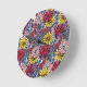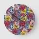 Pretty Pink Lilac Blue Red Wildflower Illustration Round Clock