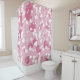 A cute and beautifully designed shower curtain adorned with love heart patterns, perfect for creating a romantic touch to your bathroom décor.