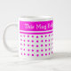 Un joli pois rose et blanc Jumbo Mug avec une bande rose bonbon où vous pouvez changer ou supprimer le libellé, si vous le souhaitez.