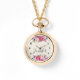 Personalized watch with a rose and peonie flower border. Cheerful and summery. Background is a faux parchment image. Name written in a fancy trendy script font.