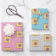 A repeating pattern of a pretty pink rose adorns these three sheets of birthday wrapping paper. The rose is a doodle style drawing, on yellow, inside a black line surround and incorporates your choice of name and greeting. Each sheet has a different background colour - pink, light blue and grey. The gift wrap is fully personalized, you can add your name, and change the greeting if you wish. The doodle style artwork is original to the Art of Being Beth.