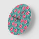 Pretty Pink Roses and Polka Dot Pattern on Teal Round Clock
