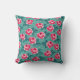 Pretty Pink Roses and Polka Dot Pattern on Teal Throw Pillow
