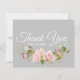 Pretty Pink Roses Bouquet on Grey Thank You Card