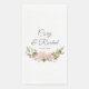 Modern and elegant wedding paper guest towel features pretty pink roses spray bouquet with fully customizable text in complementary grey fonts on white background.