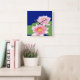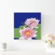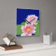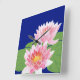 A chic Square Wall Clock, with two pink Water Lilies on a deep blue background. The water lily is the July Birth Month flower and there is space to add your initials or name if you wish.
