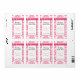 Chic pink and white damask mini wedding wine labels ready for you to personalize with your own information. A pink edged white text area, in the middle has pink and black custom text and graphics of a pink ribbon, with a silver tone heart, decorates the top. Great for your wedding reception or your home made wines.
