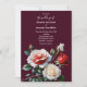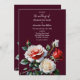 Elegant dark pretty red and pink white rose on dark burgundy background floral cottage core wedding Invitation