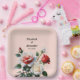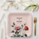 Pretty pink white red roses floral wedding paper plate