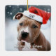 Pretty Pit Bull with Santa Hat Christmas Ceramic Ornament