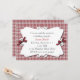 Pretty custom red and white plaid invitation, with a great country look. A decorative white text area sits over the plaid background, sweet little dark red bows decorate the two sides of the text area. Personalize the text to suit your party needs.