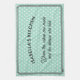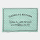 A stylish kitchen towel in light aqua, patterned with white polka dots. The caption is "(Name)'s Kitchen. Where the cakes are made and the stories are told". The pretty tea towel can be personalized with a name, and makes an ideal gift for lovers of cooking and baking.