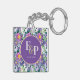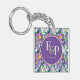 Pretty Purple Blue Florals Monogram Wedding Favour Keychain