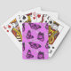 This deck of colourful butterfly themed playing cards features the images of three different pink / purple butterflies with black and white markings patterned over a doodle flower outline pattern on a customizable pink background - by katz_d_zynes