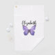 Pretty purple butterfly with custom name ladies golf towel