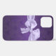 Elegant iPhone case done in a rich purple damask look. Lovely graphics of a lavender satin looking ribbon and bow, runs across the middle. Very pretty phone case that makes a sweet gift idea.