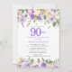 Pretty Purple Floral 90th Birthday Party Invitation
