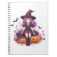 Pretty Purple Haired Witch Pumpkins & Bats Notebook