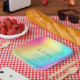 This pretty rainbow gradient wedding paper plate is beautifully simple and colourful. Cute colour fade decor for an LGBTQ couple to use as reception favours for a gay pride wedding with a light and cheerful theme this summer.