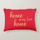 Pretty apple red throw pillow with "home away from home" on it in soft yellow / cream coloured script. For your beach cottage, forest cabin, RV, or for your own farmstay or B&B accommodations that you offer to visiting guests. Words can be changed to your own if you prefer. This one is set up in washable cotton but there are other fabric choices with different prices.