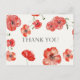 Pretty Red Poppies modern floral wedding Thank You Postcards. Matching products also available.