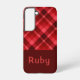 A monogrammed phone case featuring a beautiful diagonal plaid pattern design in ruby red. Create the perfect customized gift by clicking the “personalized” button to add a name or custom message in the provided template field. Select the “Edit using Design Tool” link to change the font, text size and more.