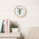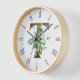 Wood framed wall clock features rustic wood letter T monogram with watercolor eucalyptus and lavender embellishment. Perfect for bedroom or Livingroom walls.